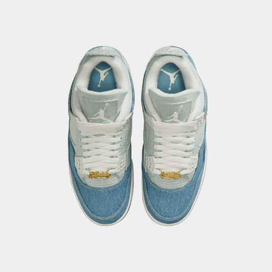 Air Jordan 4 Retro Worn Blue Womens Lifestyle Shoes (Sail/Gum Light Brown/Worn Blue/Sail/Metallic Gold)