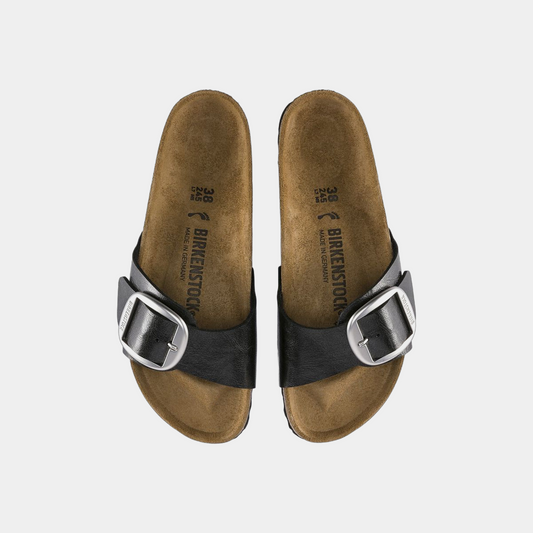 Madrid Big Buckle Womens Sandals (Black/Silver)