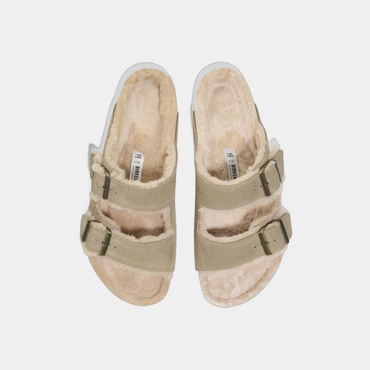 Arizona Shearling Womens Sandals (Beige/Gold)