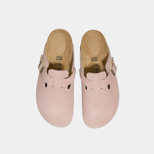 Boston Suede Leather Womens Sandals (Pink/Gold)