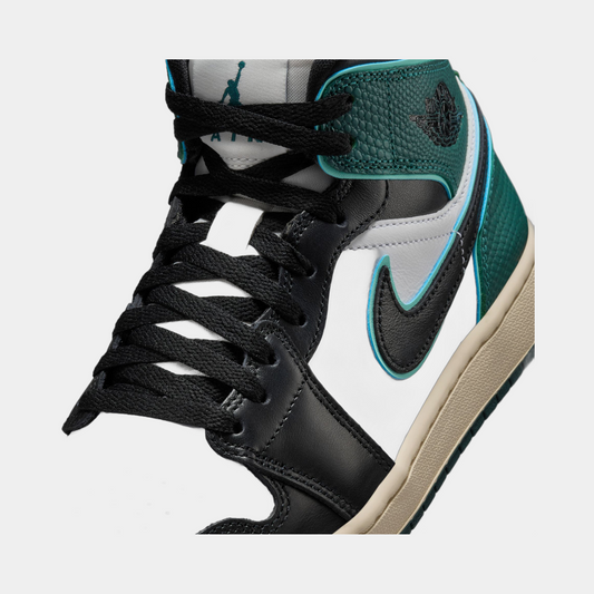 Air Jordan 1 Mid SE Oxidized Green Womens Lifestyle Shoes (White/Light Dew/Oxidized Green/Black)